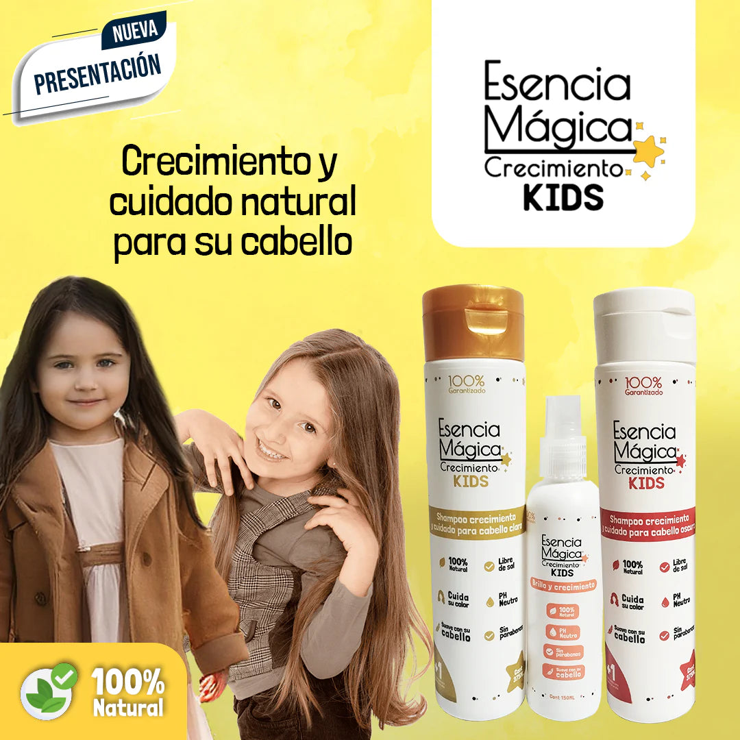 El combo es el primer kit capilar diseñado especialmente para bebés y niños con crecimiento lento o débil en el cabello.